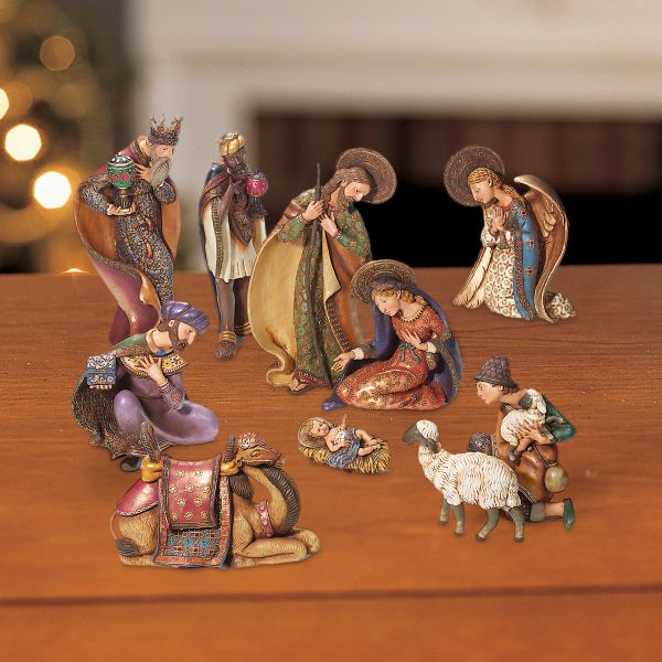 "Crafted of resin : Includes Holy Family, three wise men, animals and more : " "European Nativity"